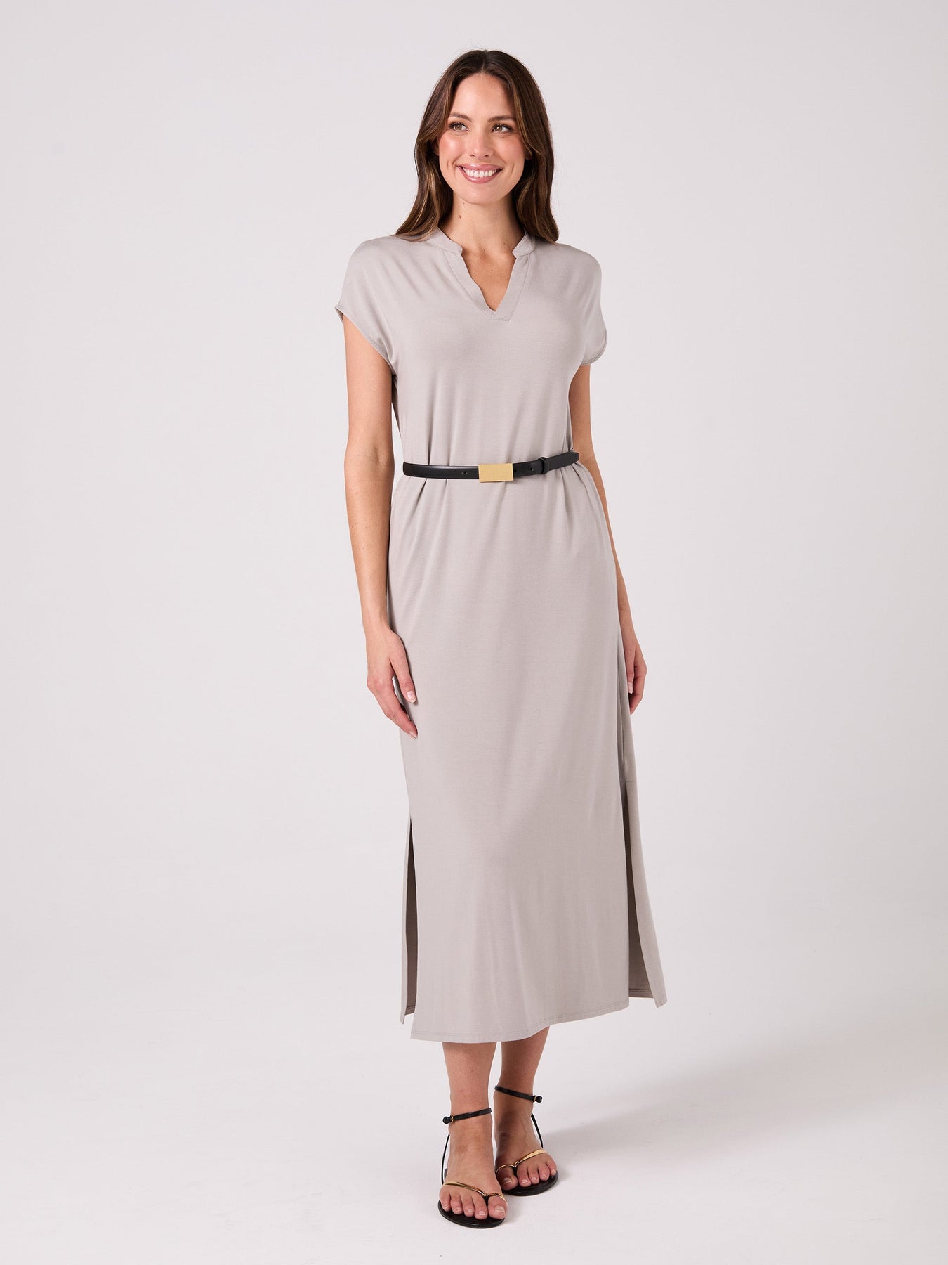 Easy to wear, easy to love. Crafted from beautifully soft, breathable Lenzing™ Modal, this maxi dress is designed for all-day comfort and timeless style. It features a thoughtfully designed placket neckline, a flattering sleeve length, and a fluid drape that flatters every body Complete with functional side pockets and a relaxed, throw-on-and-go silhouette, it’s your perfect AM-to-PM piece—versatile, effortless, and endlessly wearable.