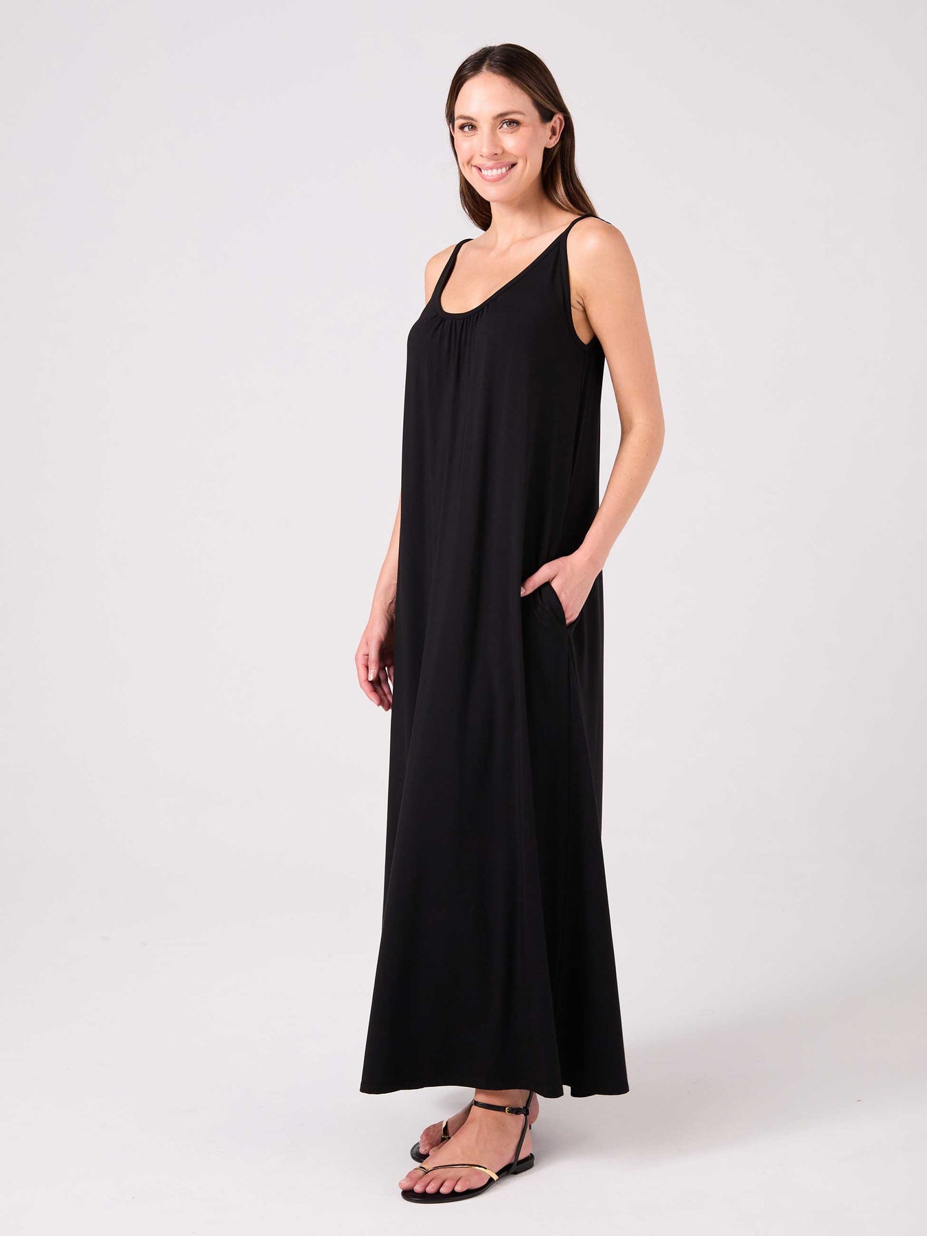 Experience laid-back luxury with our Soft Luxe Maxi Dress, made from sustainably sourced Lenzing™ Modal—a fabric known for its exceptional softness, breathability, and graceful drape. This full-length dress features adjustable shoulder ties, offering a customizable fit with an effortlessly feminine touch. Whether you're heading to a brunch, a beach vacation, or simply lounging in style, this maxi dress brings comfort and elegance together in one easy piece. Why You'll Love It: Made from ultra-soft, eco-friendly Lenzing™ Modal Adjustable shoulder ties for a personalized fit Flowing maxi length for an elegant silhouette Lightweight and breathable—perfect for warm days or layering Sustainable, stylish, and endlessly wearable—this is your new favorite go-to dress.