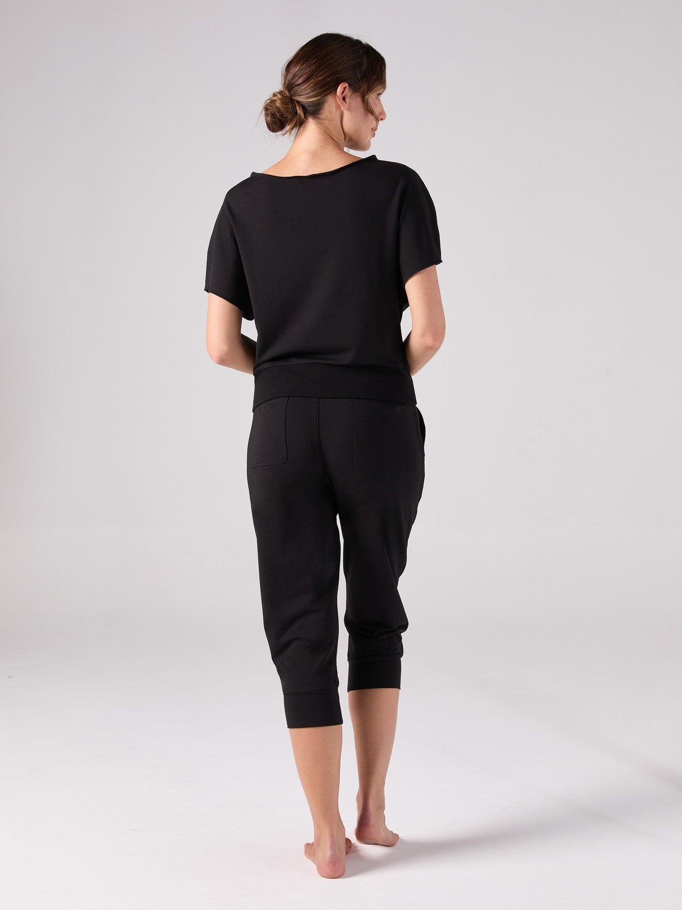 French Terry Short Sleeve Off Shoulder Sweatshirt  - Black
