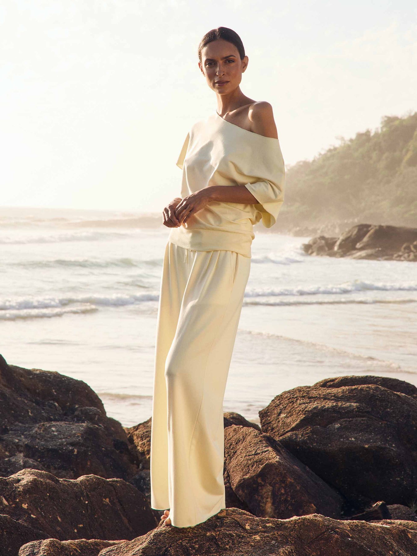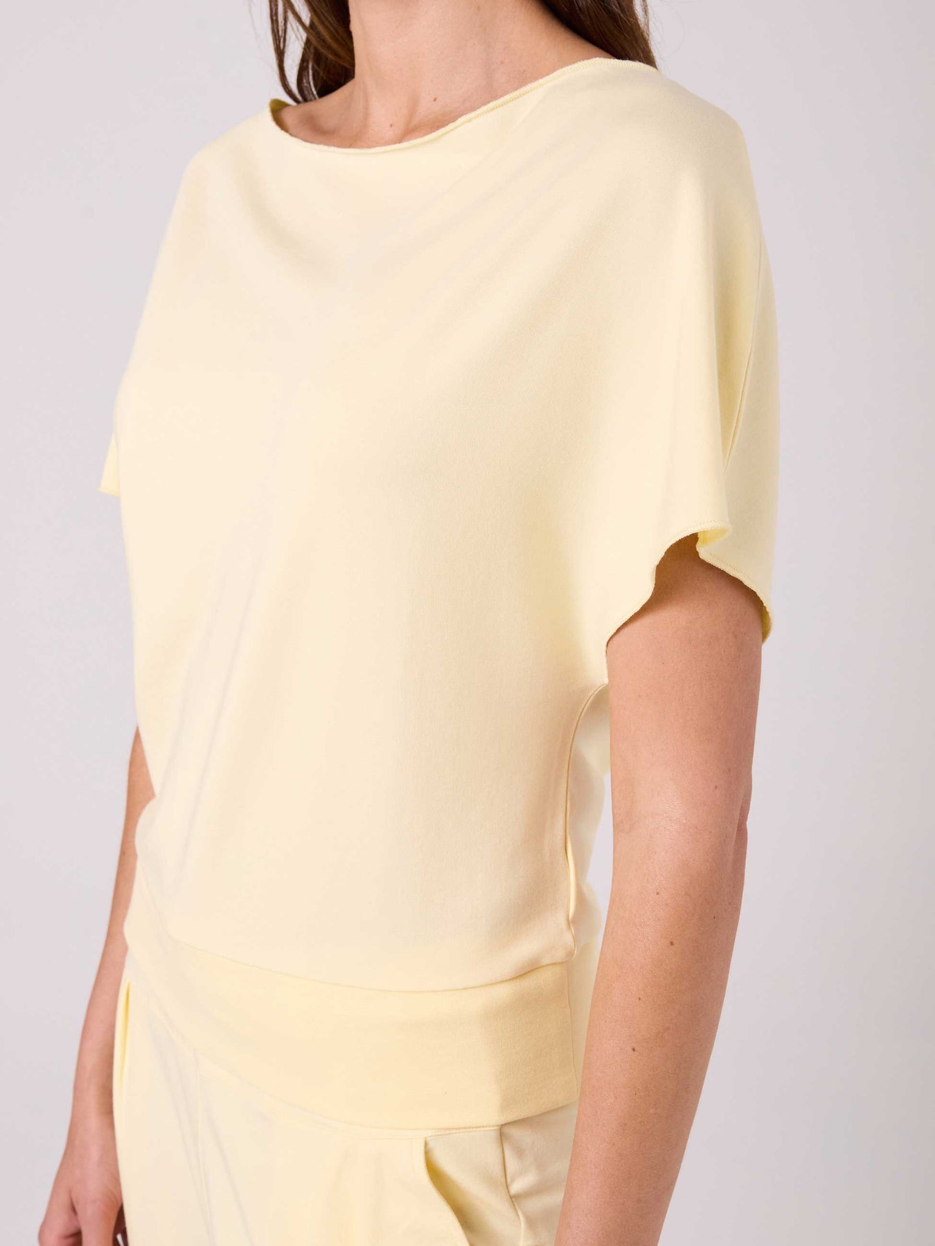 French Terry Short Sleeve Off Shoulder Sweatshirt - Pastel Yellow