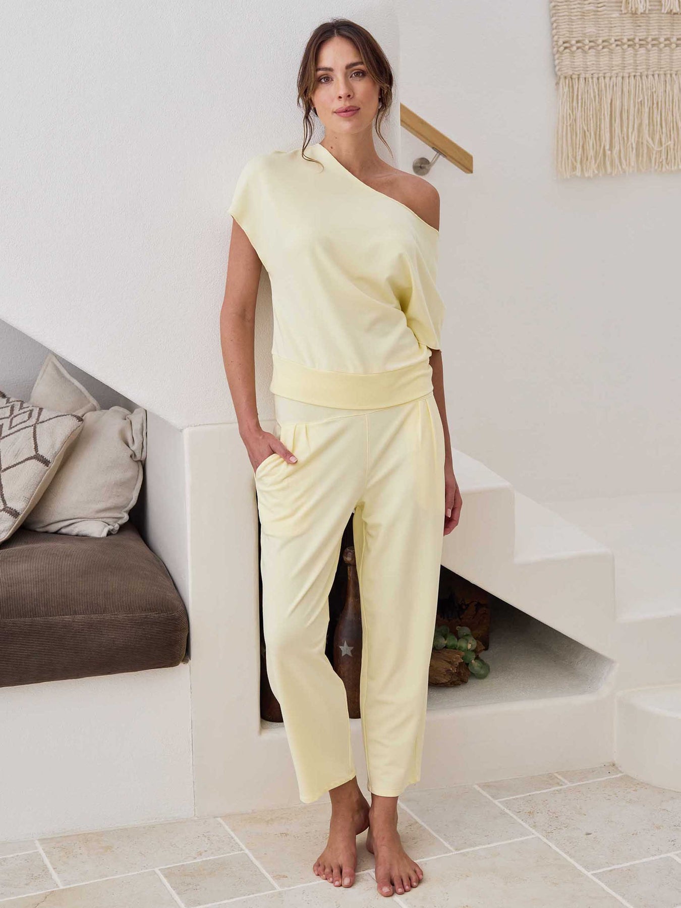 Kyoto Ankle Length French Terry Jogger - Pastel Yellow