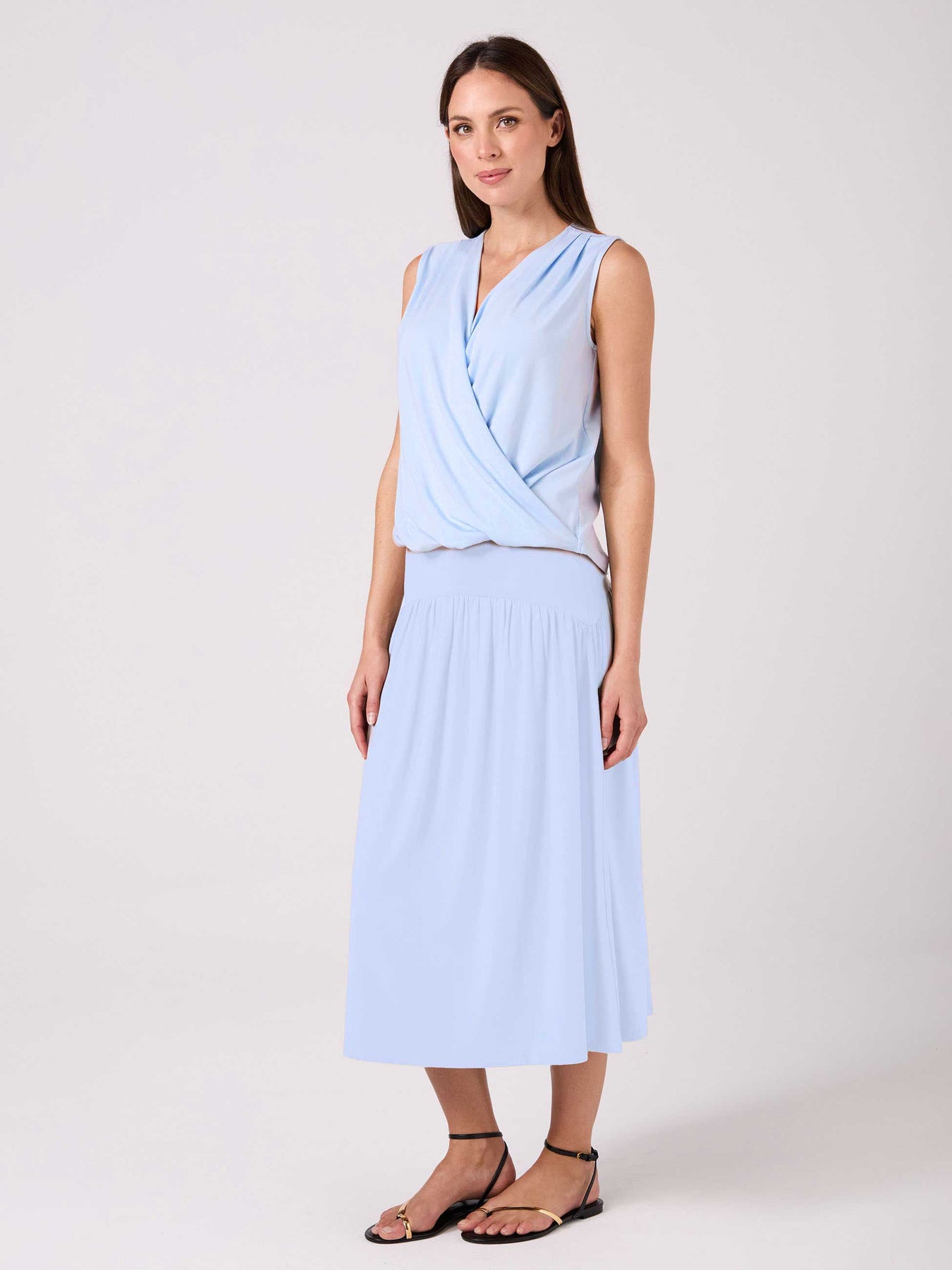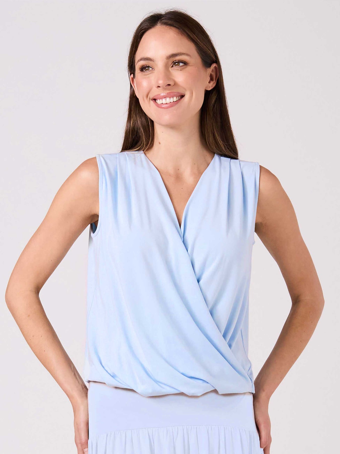 .The Athena Top features an effortlessly stylish and versatile soft wrap design. It drapes beautifully for a relaxed yet flattering fit. Made from lightweight, breathable fabric, it offers all-day comfort with draped sleeves and a refined neckline for an elevated touch. The back hemline drops for the perfect coverage. This product is true to size.
